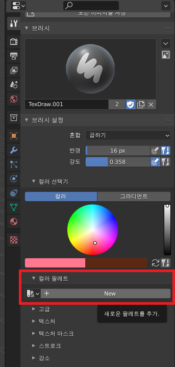 +를 선택해 새로운 팔레트를 만들면, 위 이미지처럼 이름을 설정하는 칸이 나오게 됩니다.