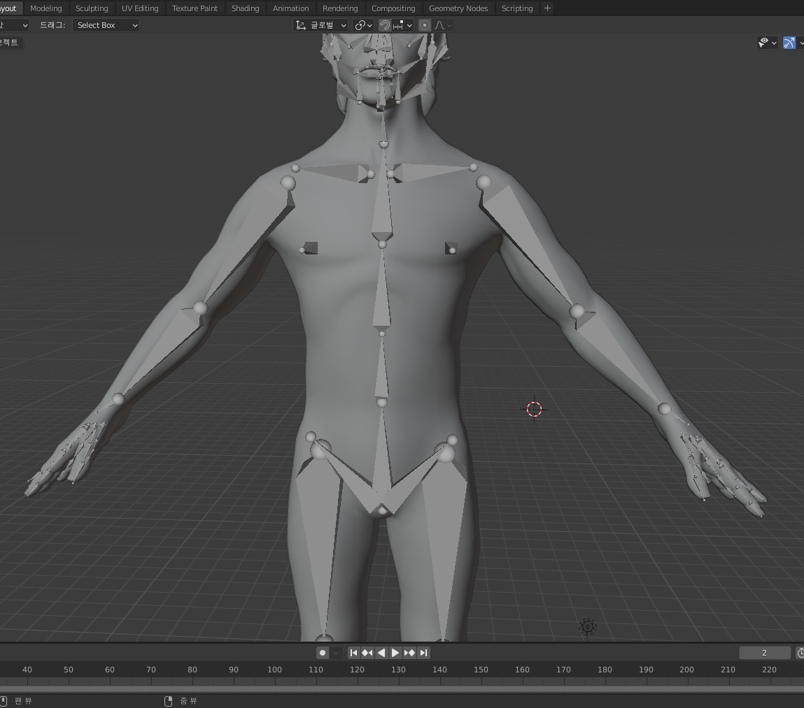 ② 메쉬에 맞게 대략적인 본의 전체 위치를 설정해줍니다.