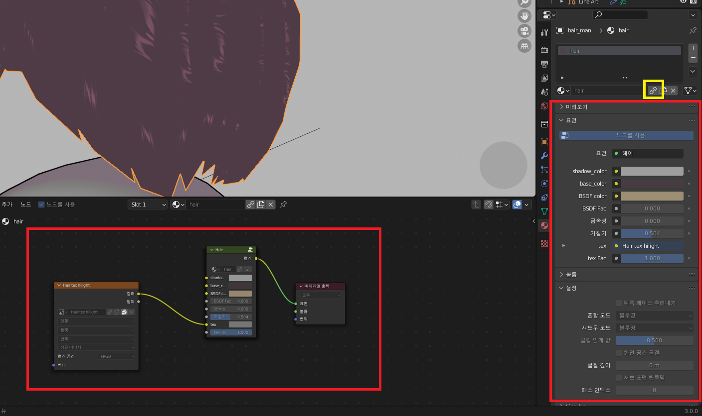 6. 처음에 '연결'로 불러온 것들은 모두 이미지 처럼 비활성화 되어 있는데, 연결 되어 있는 것을 클릭해 해제 해 주면 된다(이미지에서 노란박스 '연결' 모양 클릭시 활성화 됨)