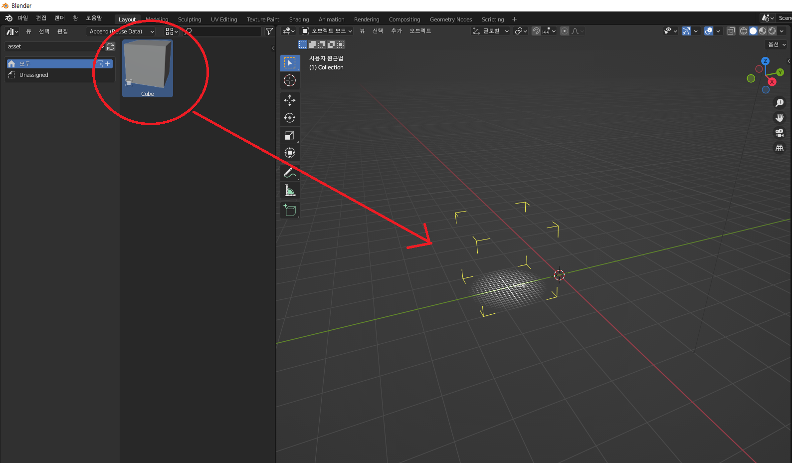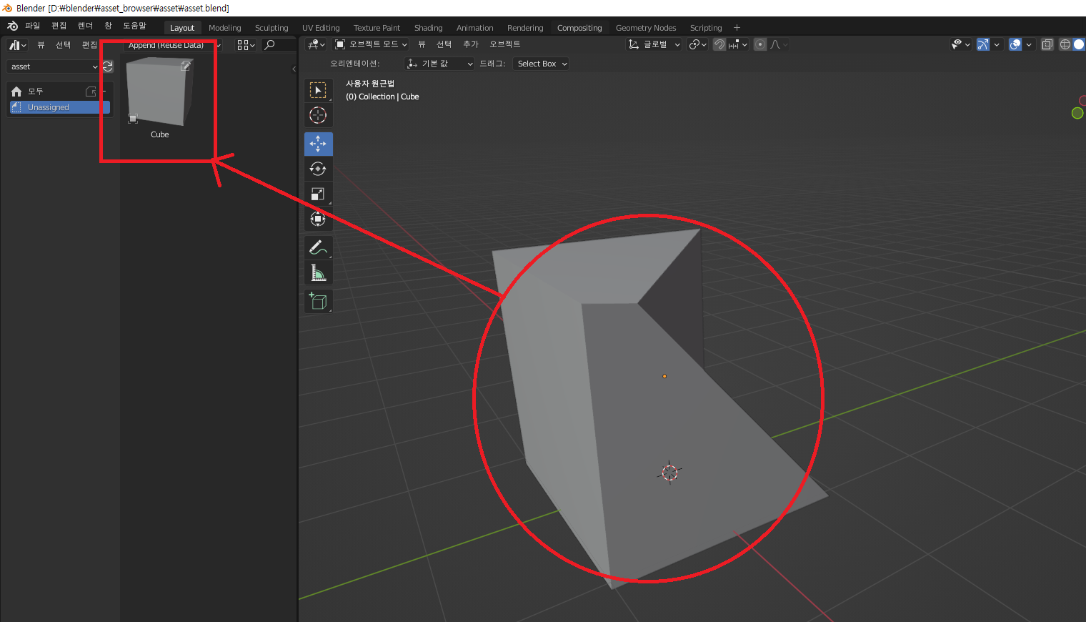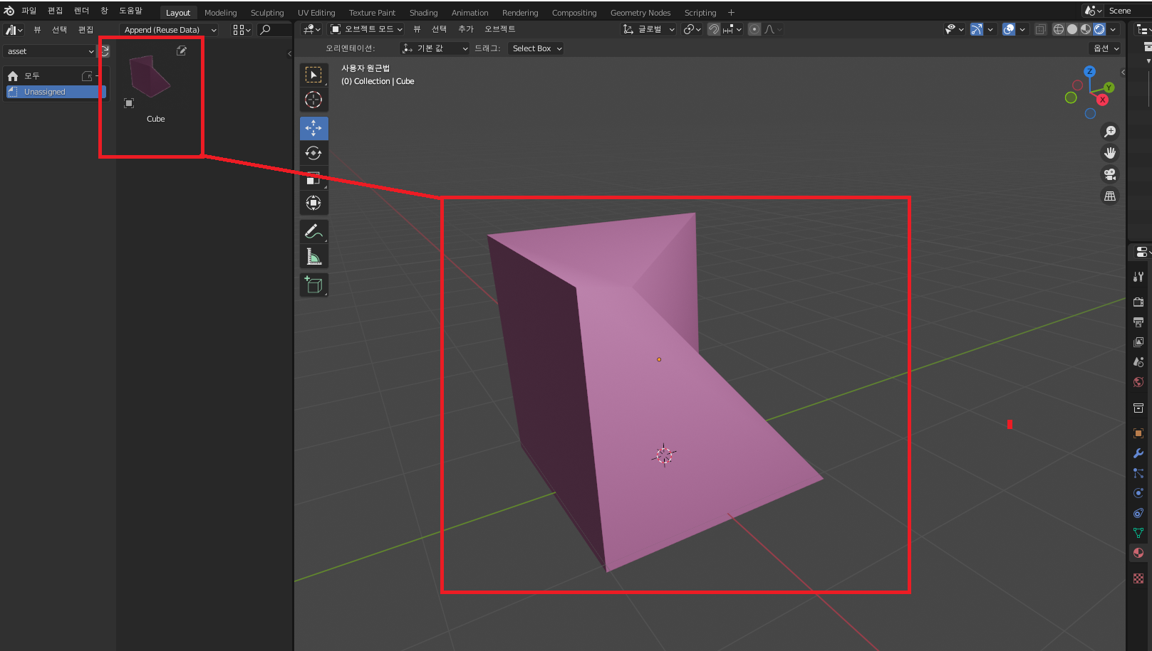 ex) 위 이미지 box asset을 asset browser에 등록해 다른 씬에서도 빠르고 편하게 불러오기
