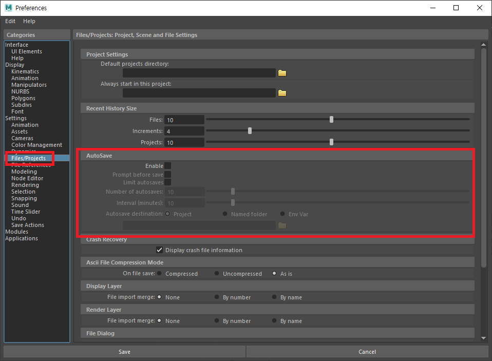 | [Maya] 다운 된 파일 찾는 법, Maya 'Auto Save' 설정 법 (0) | 2021.08.20 |