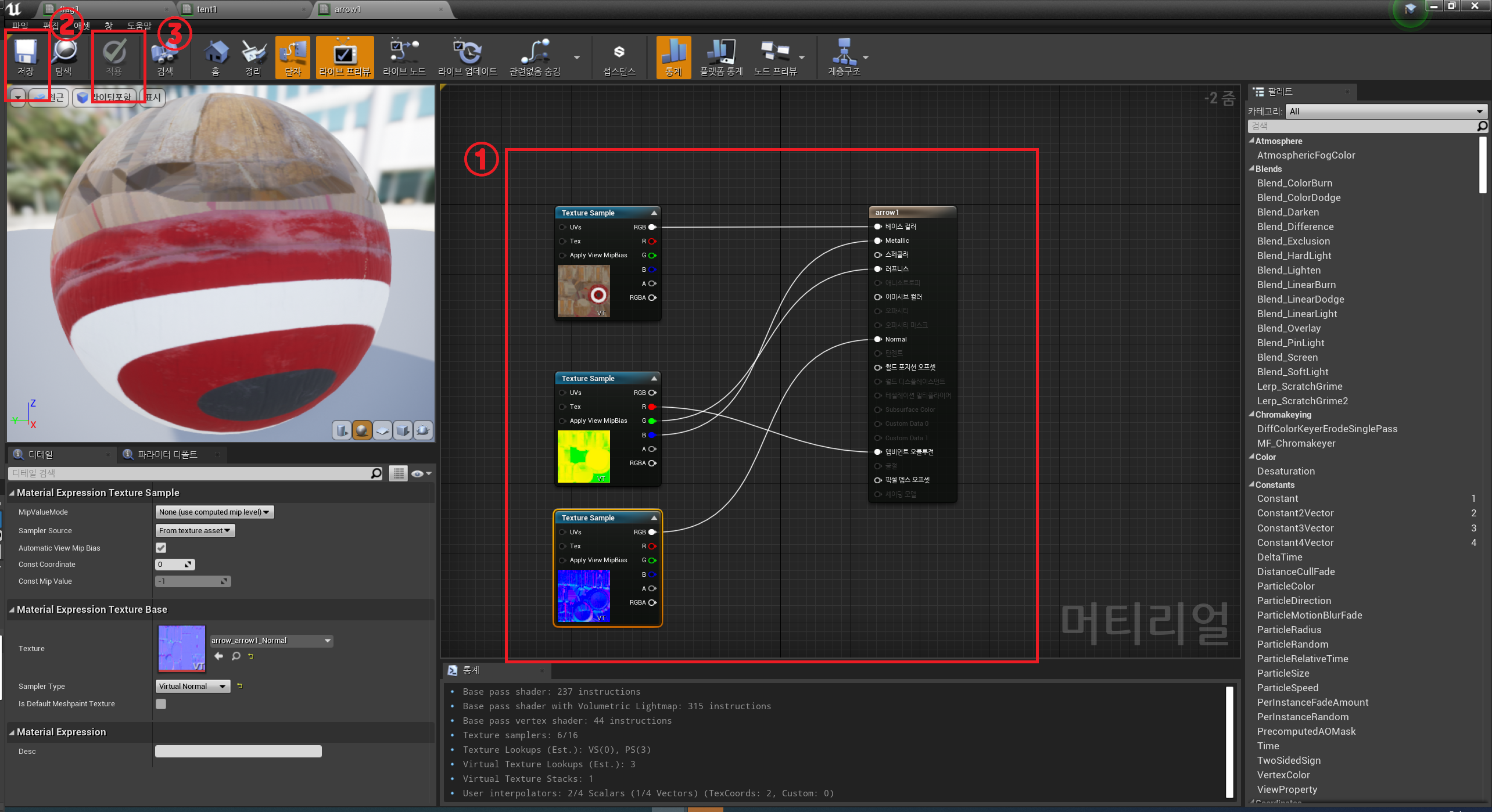 위 두가지 Shader를 오른쪽 빨간 박스 'BLEND' (Threshold , Radius, Preserve Details) 를 이용하여 위의 이미지 처럼 만들어 주었습니다.