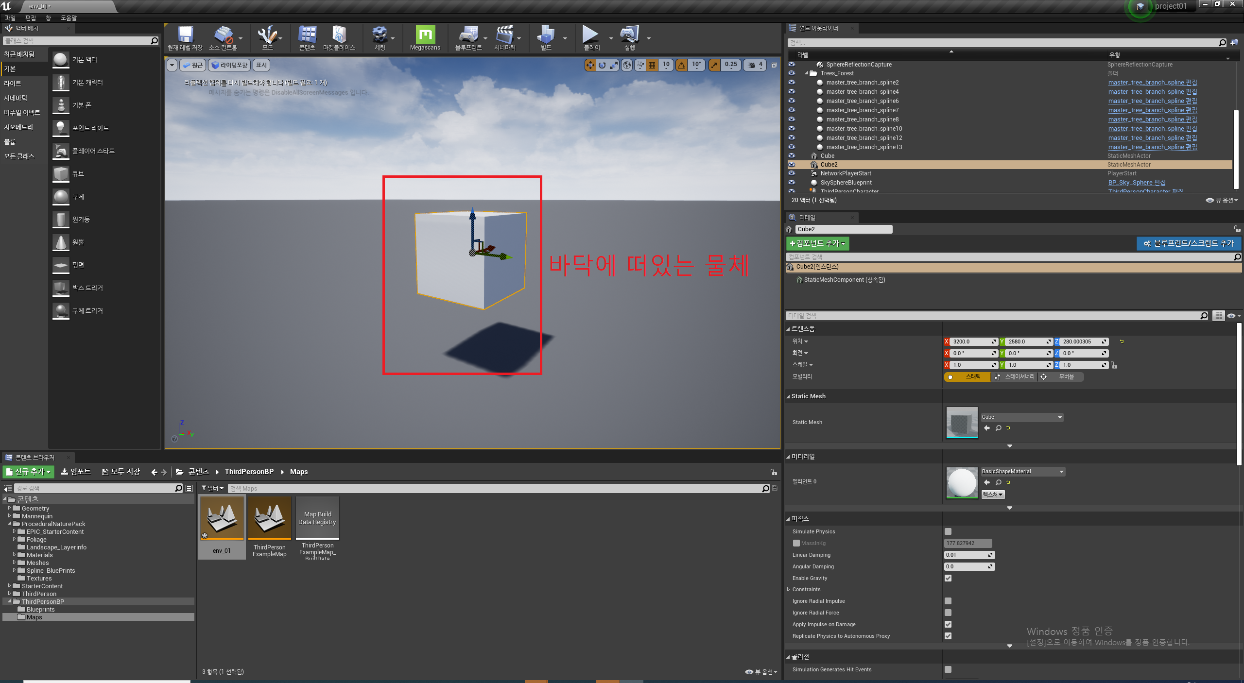 솔리드를 추가해 주면 위 이미지 처럼 albedo에 들어가 있는 칼라 대로 솔리드가 하나 추가 됩니다.