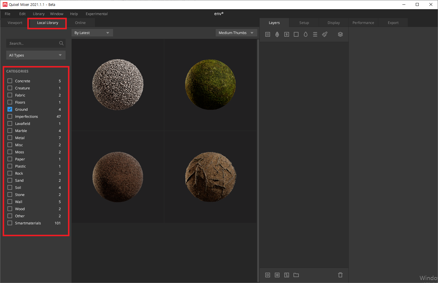 위 Viewport에서 Local Library 로 변경해주면, 내가 다운받았던 shader 들이 뜨게 됩니다.